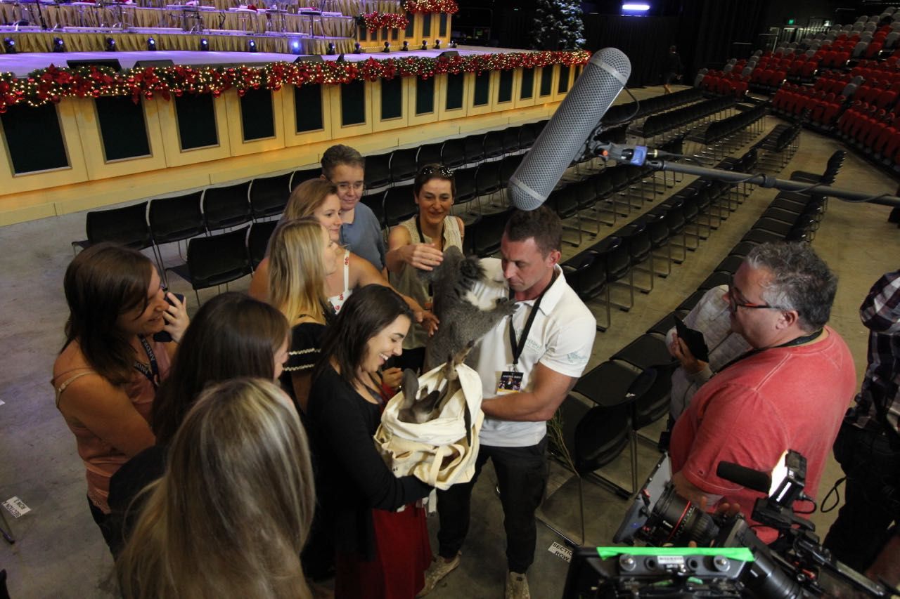 Today, two very special guests came to the concert hall today: meet Winter and Archie, a baby kangaroo and koala! Zoo wildkeeper Chad from the Featherdale Wildlide Park brought them to the ICC. Koala Archie had been left by his mother after he was born and Chad hand-raised him since then. We were all immediately in love with those two cuties!!
